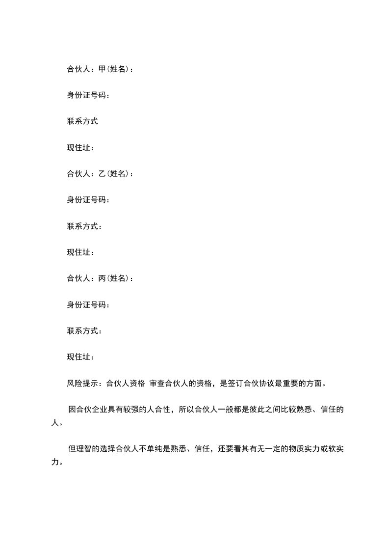 合伙人:_________________姓名:_________________,身份证号码:_________________