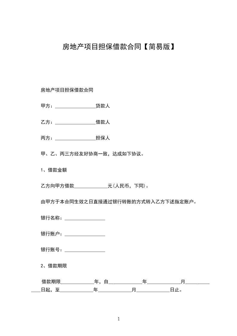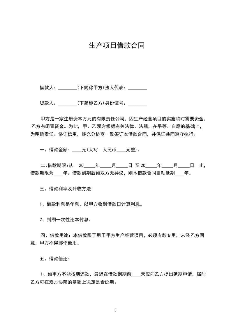 借款人因________开发项目,向贷款人申请人民币贷款_____ 万元,期限为______年。根据我国有关法律规定,经双方当事人平等协商,自愿签订本借款合同。