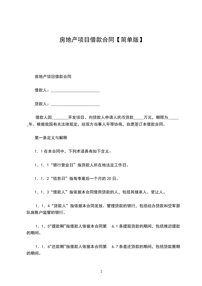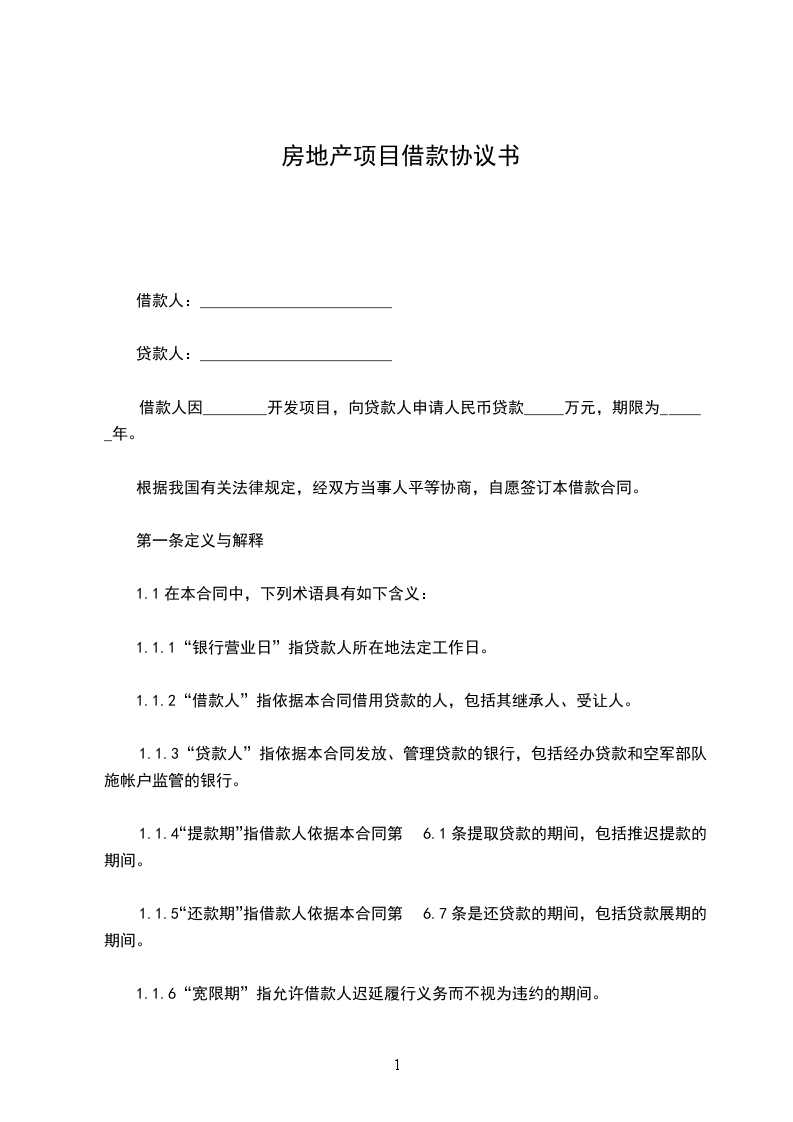 1.1.1 “银行营业日”指贷款人所在地法定工作日。