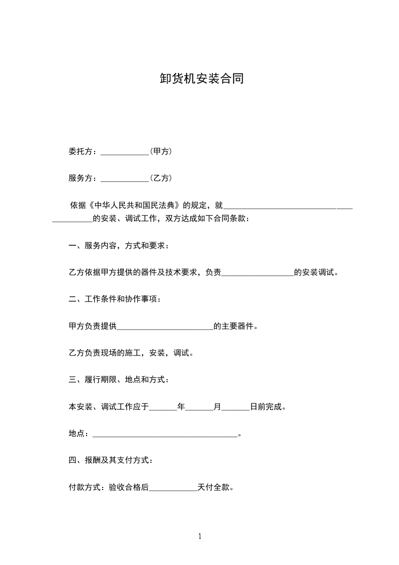 第六条:由乙方送货至_____________________市内甲方指定地点,运费由负责;由甲方负责卸车并承担相应费用。