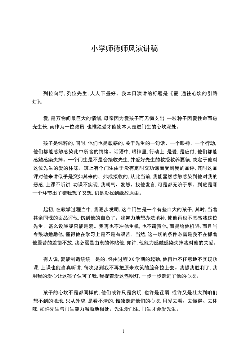 列位向导,列位先生,人人下昼好。我本日演讲的标题是《爱,通往心坎的引路灯》。