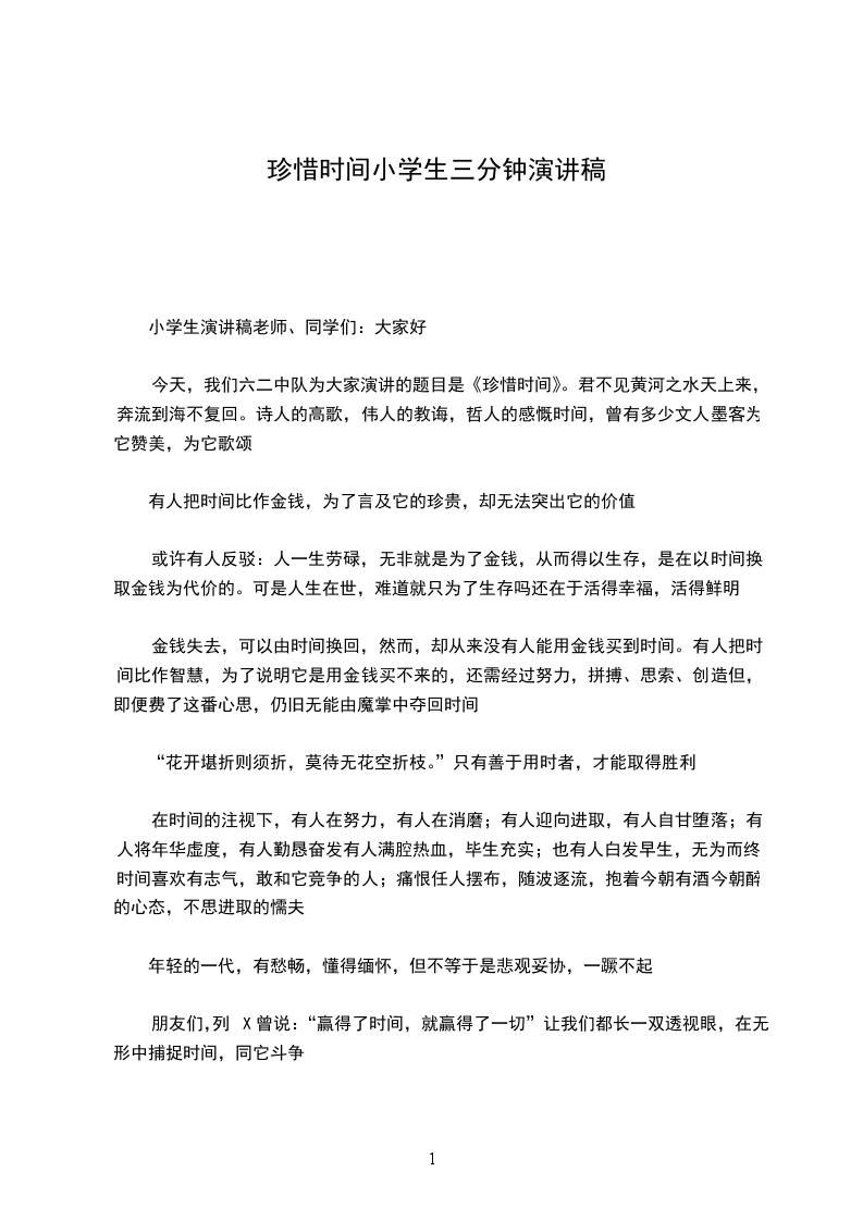 今天,我们六二中队为大家演讲的题目是《珍惜时间》。君不见黄河之水天上来,奔流到海不复回。诗人的高歌,伟人的教诲,哲人的感慨时间,曾有多少文人墨客为它赞美,为它歌颂