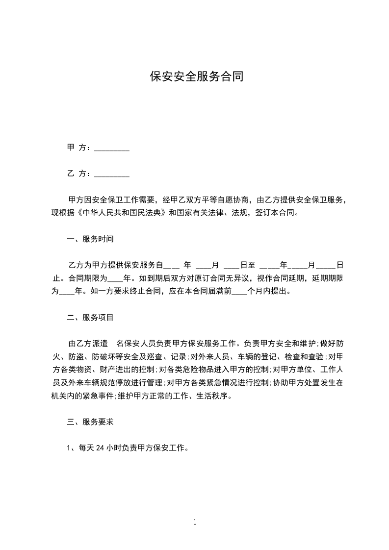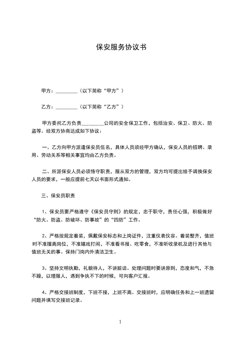 2、保安人员实行统一着装,服装由乙方提供。