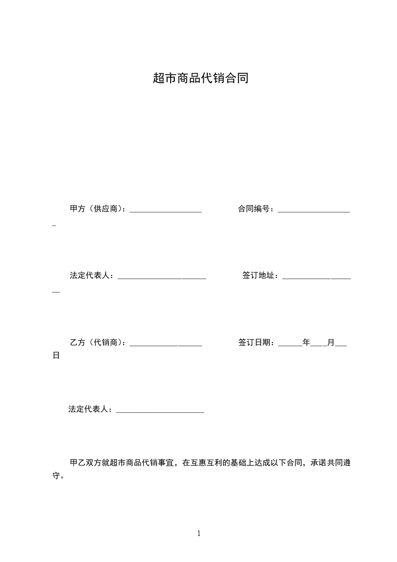 甲乙双方就超市商品代销事宜,在互惠互利的基础上达成以下合同,承诺共同遵守。