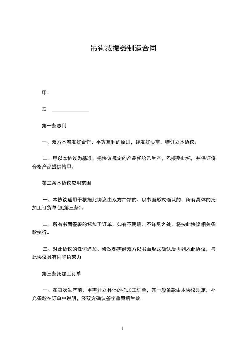 一、甲托乙加工生产之产品为出口液压件等系列产品,乙保证按甲乙双方确定的托加工订单和甲提供的图纸要求进行加工。
