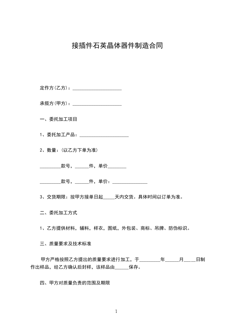 甲方严格按照乙方提出的质量要求进行加工,于_________年______月_____日制作出样品,经乙方确认后封样,该样品由______保存。