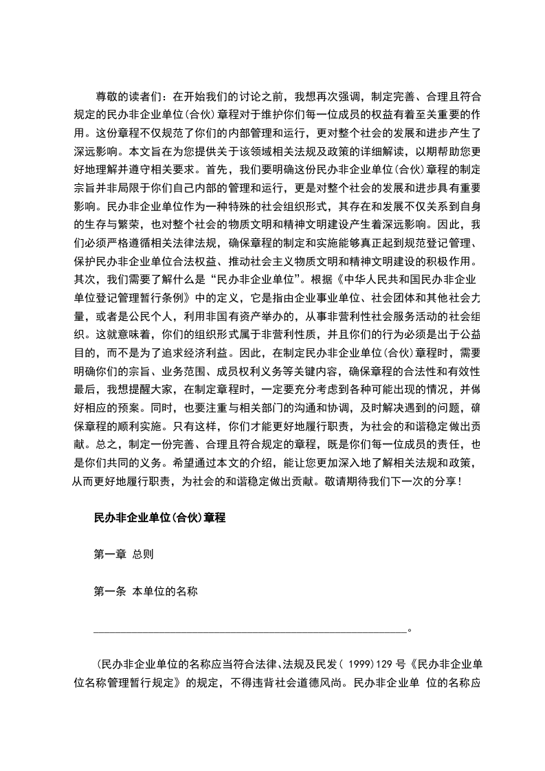 (其中必须载明:全体合伙人自愿出资举办、从事的行(事)或业务领域、非营利性社会组织。)