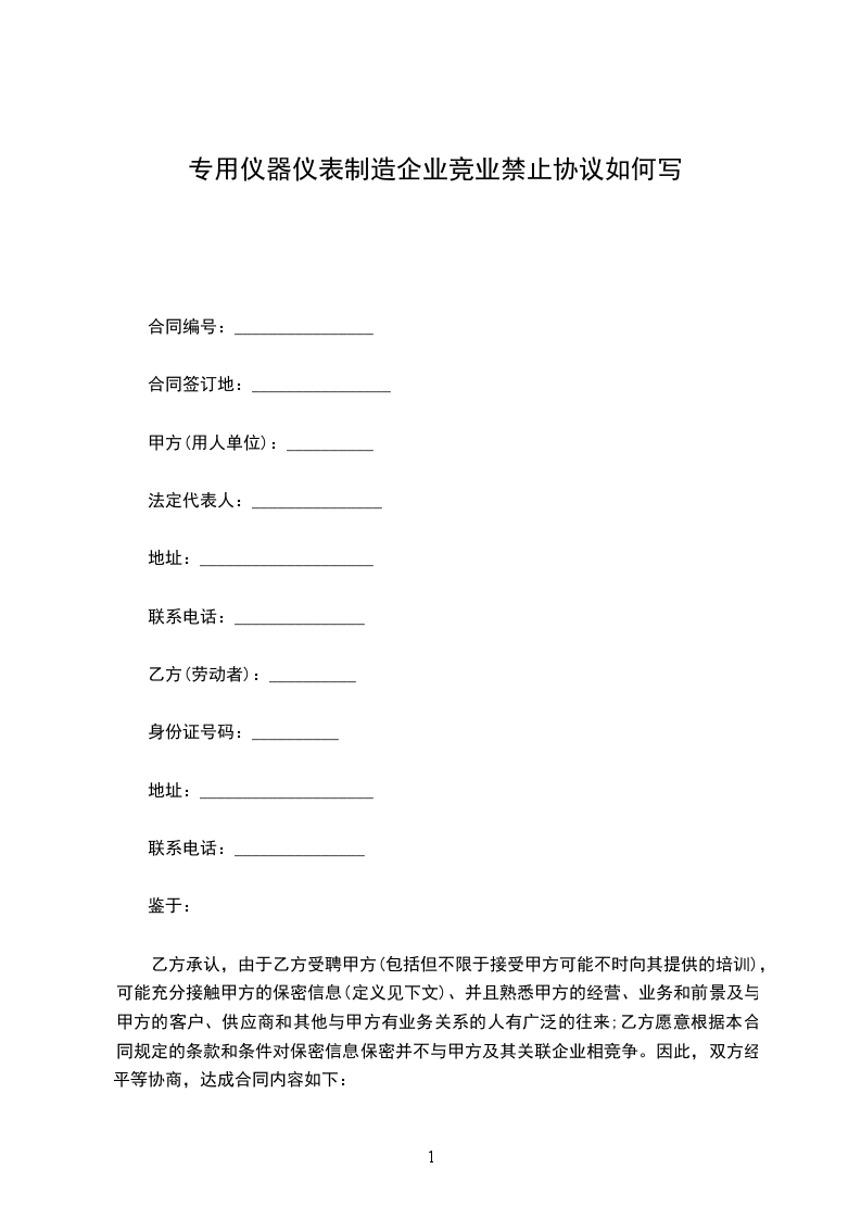 仪器仪表制造业企业竞业限制协议