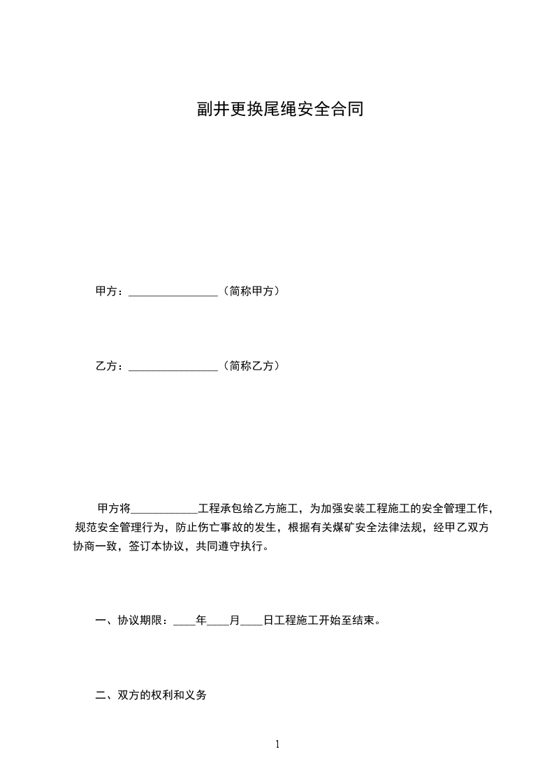 甲方将____________工程承包给乙方施工,为加强安装工程施工的安全管理工作,规范安全管理行为,防止伤亡事故的发生,根据有关煤矿安全法律法规,经甲乙双方协商一致,签订本协议,共同遵守执行。