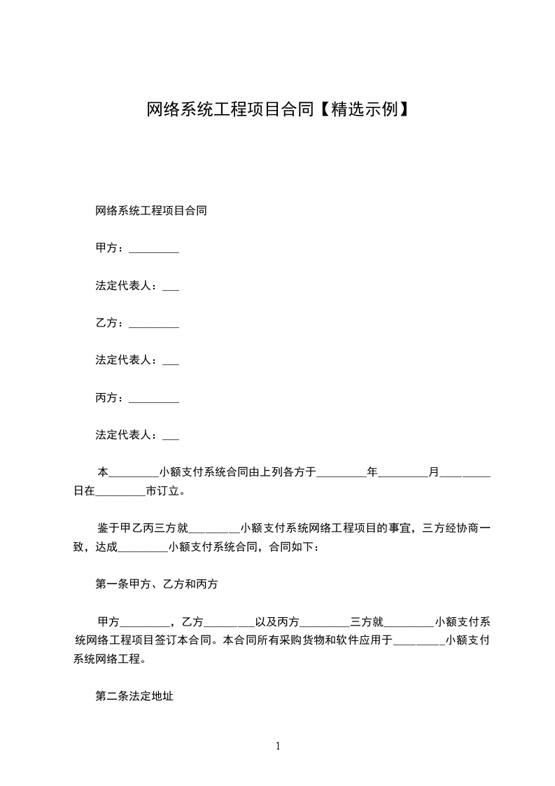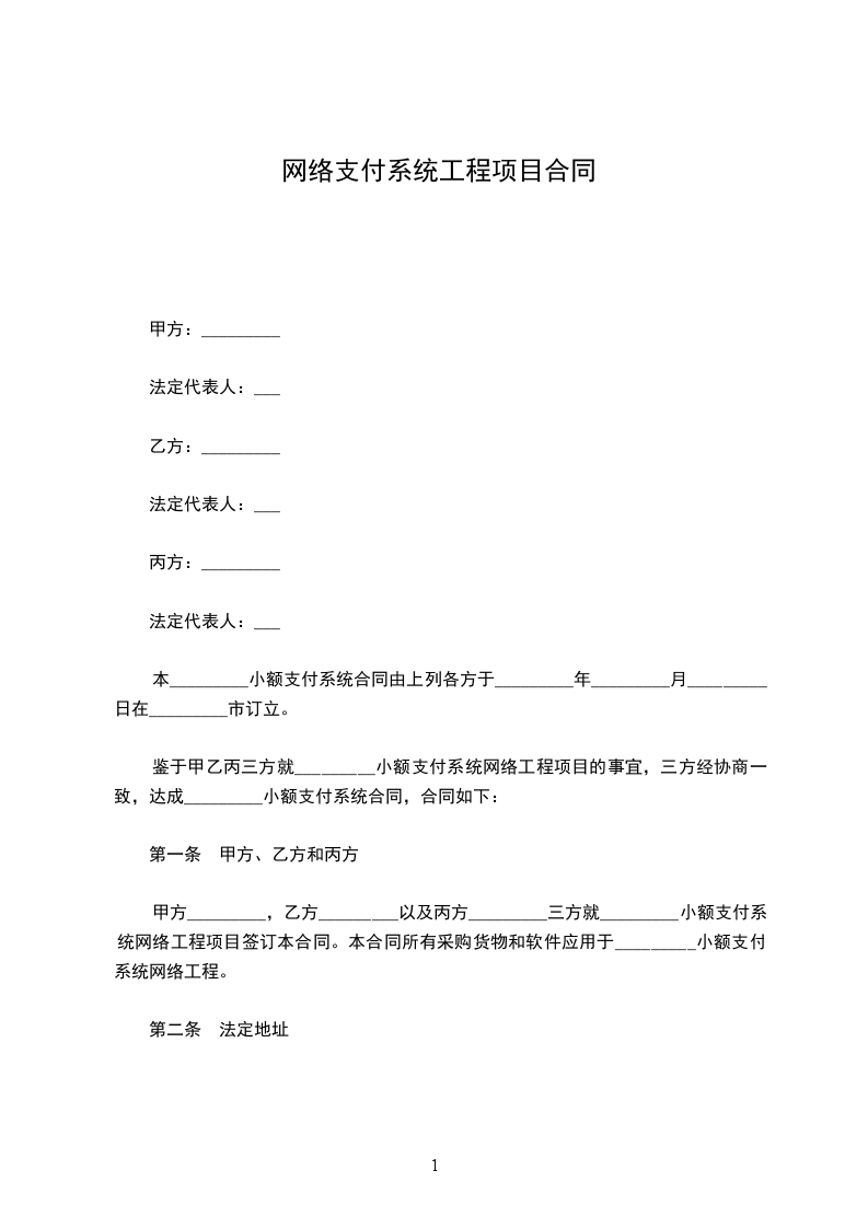 鉴于甲乙丙三方就_________小额支付系统网络工程项目的事宜,三方经协商一致,达成_________小额支付系统合同,合同如下: