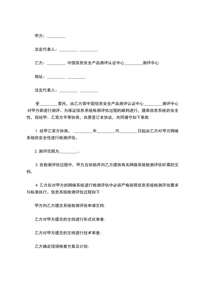 4.乙方应在工地进行工程的安装,并在甲方、丙方参与下实施系统完工测试和调试。