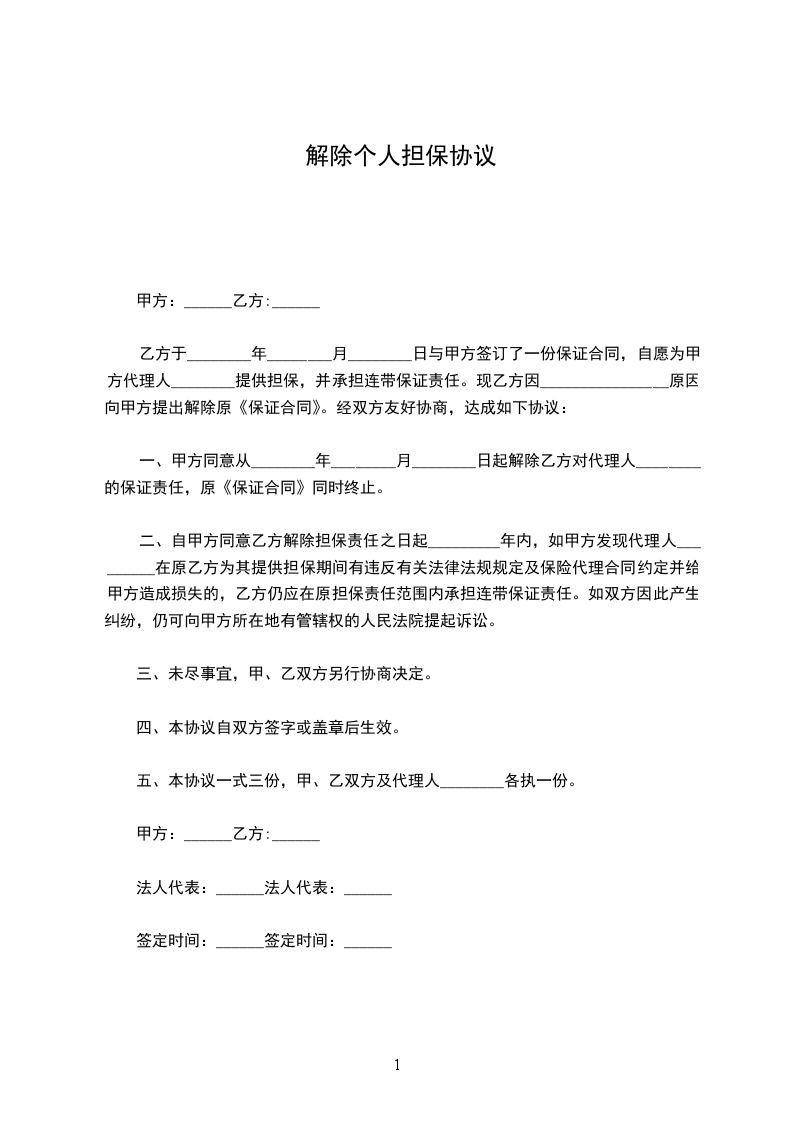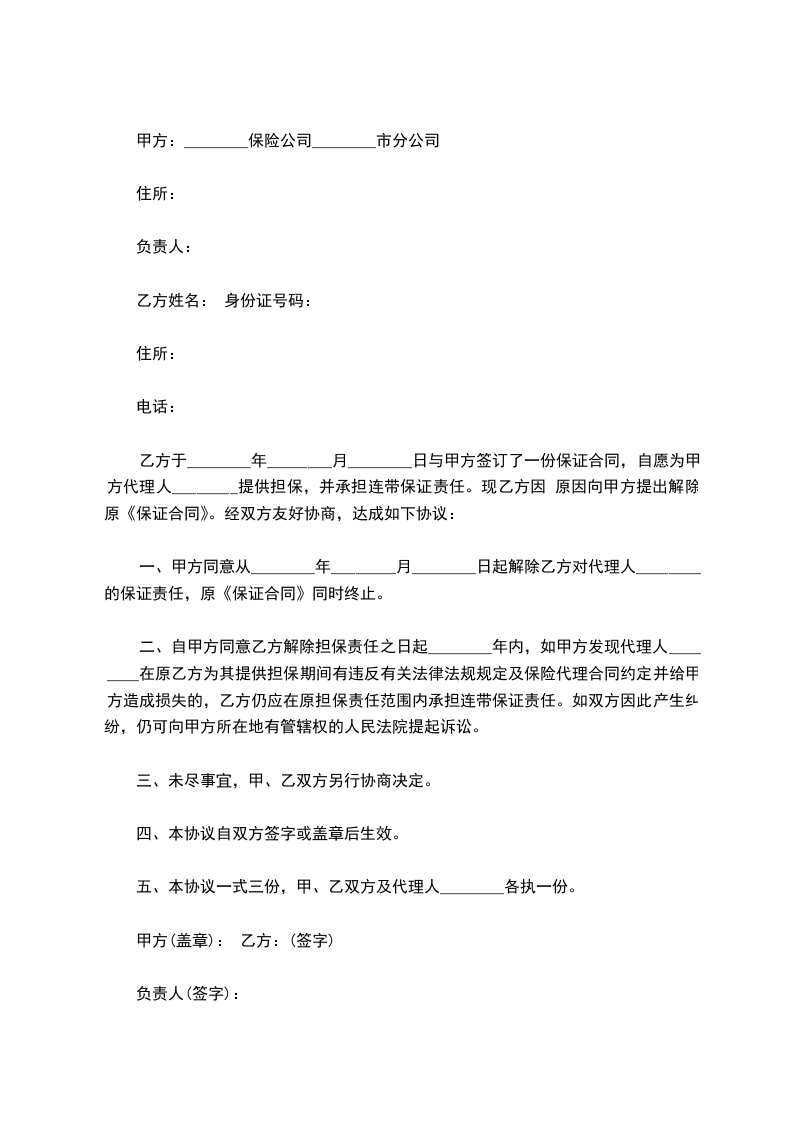 3、甲方应将乙方已交纳的___________元保证金于本解除合同协议书生效时退还乙方;【如果有保证金此条款留存,没有保证金此条款删除】