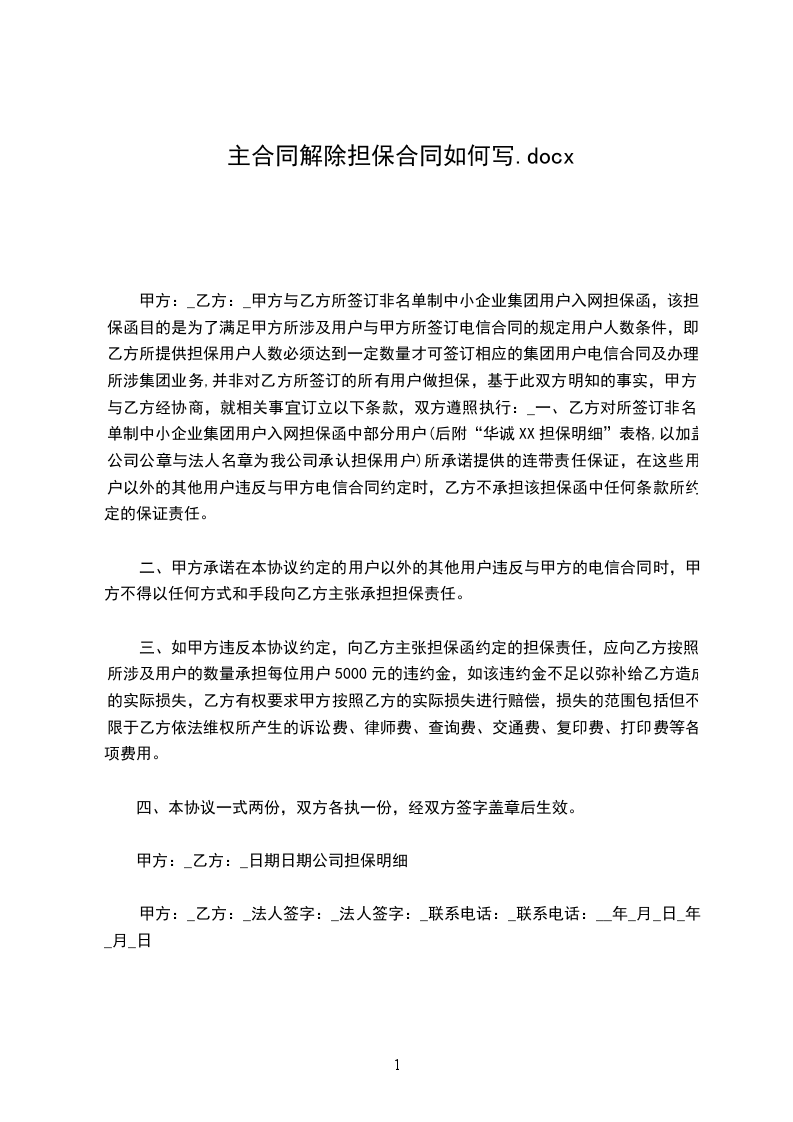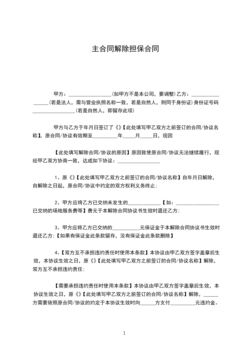 4、【双方互不承担违约责任时使用本条款】本协议由甲乙双方签字盖章后生效,本协议生效之日,原《》【此处填写甲乙双方之前签订的合同/协议名称】解除,双方互不承担违约责任;