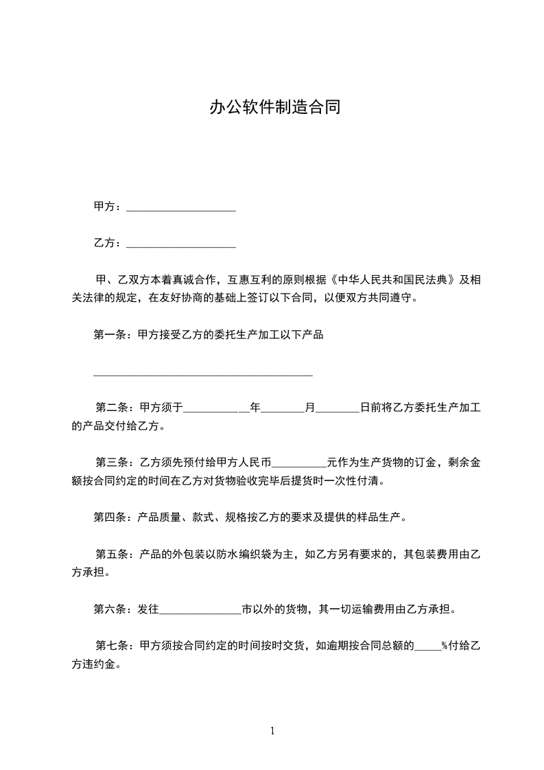第一条:甲方接受乙方的委托生产加工以下产品