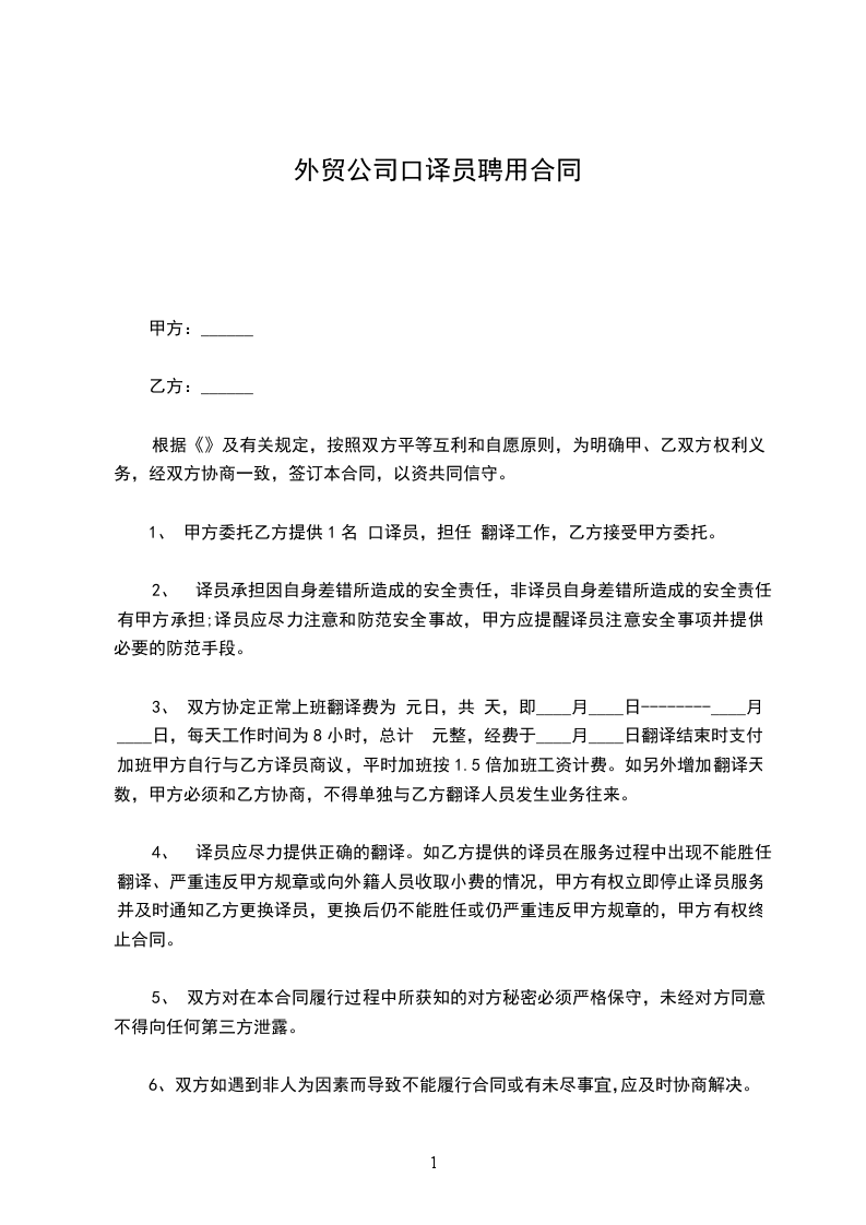 1.经考核现甲方聘任乙方在公司_____________部门_________________岗位_____________工作,根据乙方专长和工作需要,甲方可调整乙方工作岗位,乙方应服从安排。