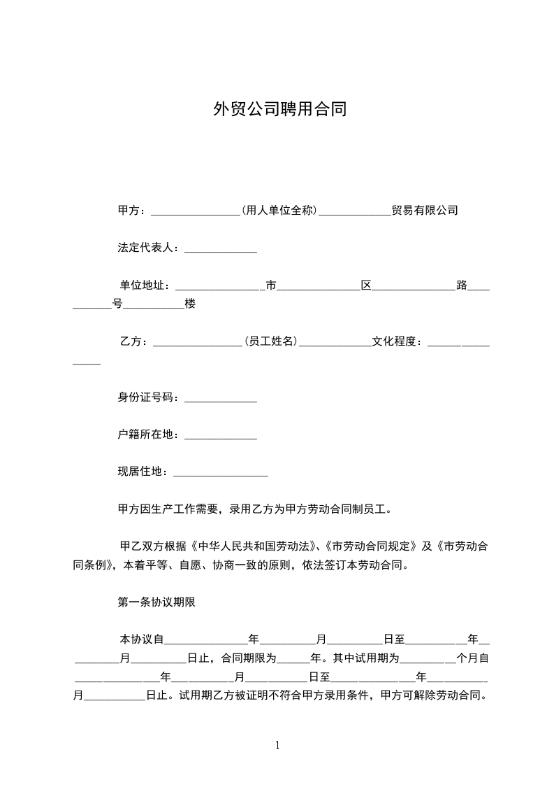 甲方:________________(用人单位全称)_____________贸易有限公司