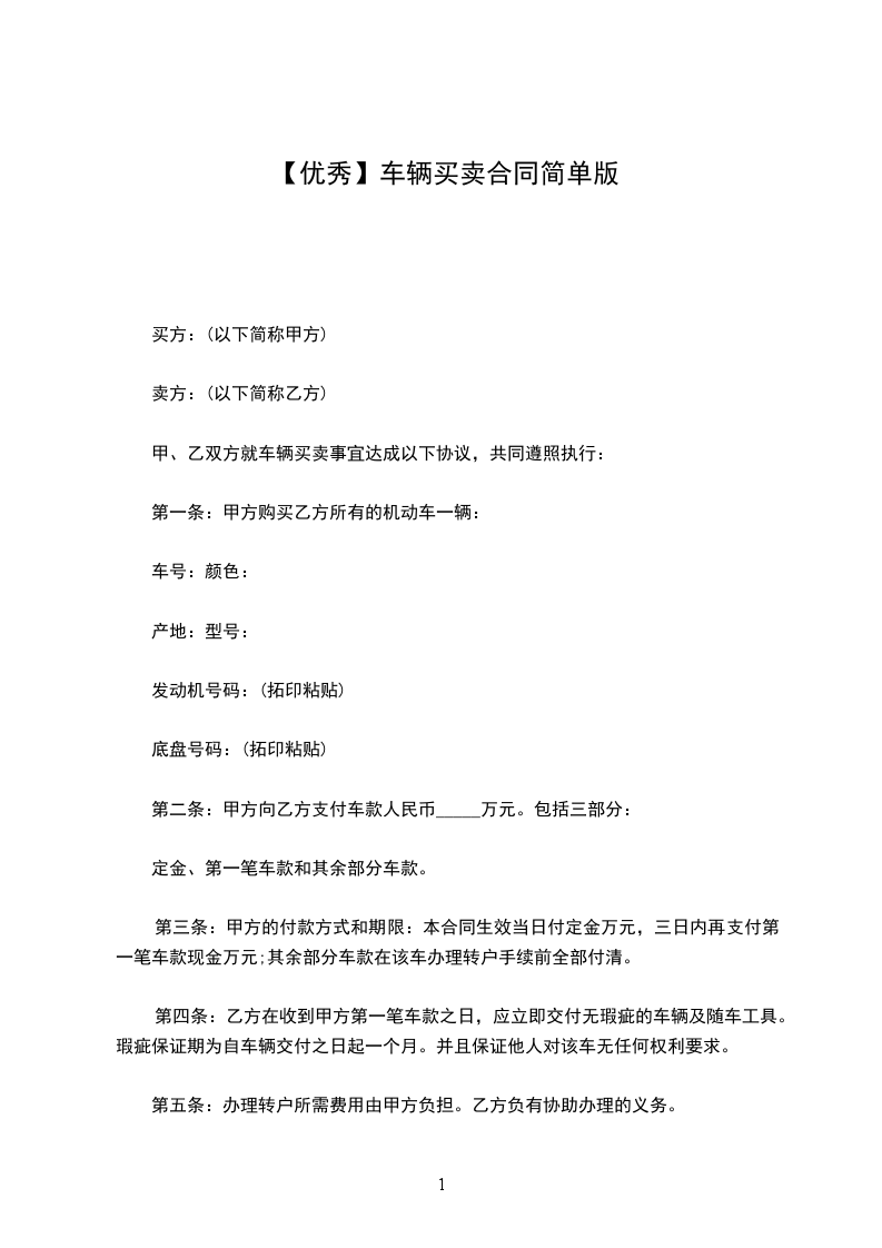 第一条:________________甲方购买乙方所有的机动车一辆:________________