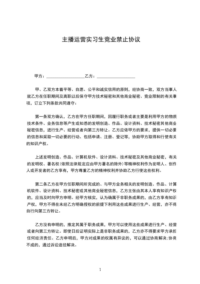 1.乙方在甲方任职期间,不得从事竞业行为。