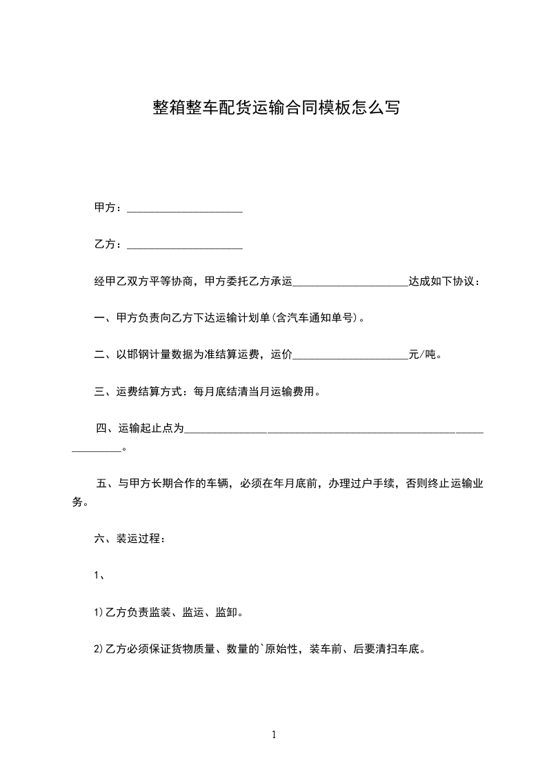 二、甲方若不跟人押车,卸货地址务必填写清楚,货物包装必须完整无损。乙方按约定卸货地址按期、完整无缺运到和办理交接货物手续,否则造成损失各负其责。