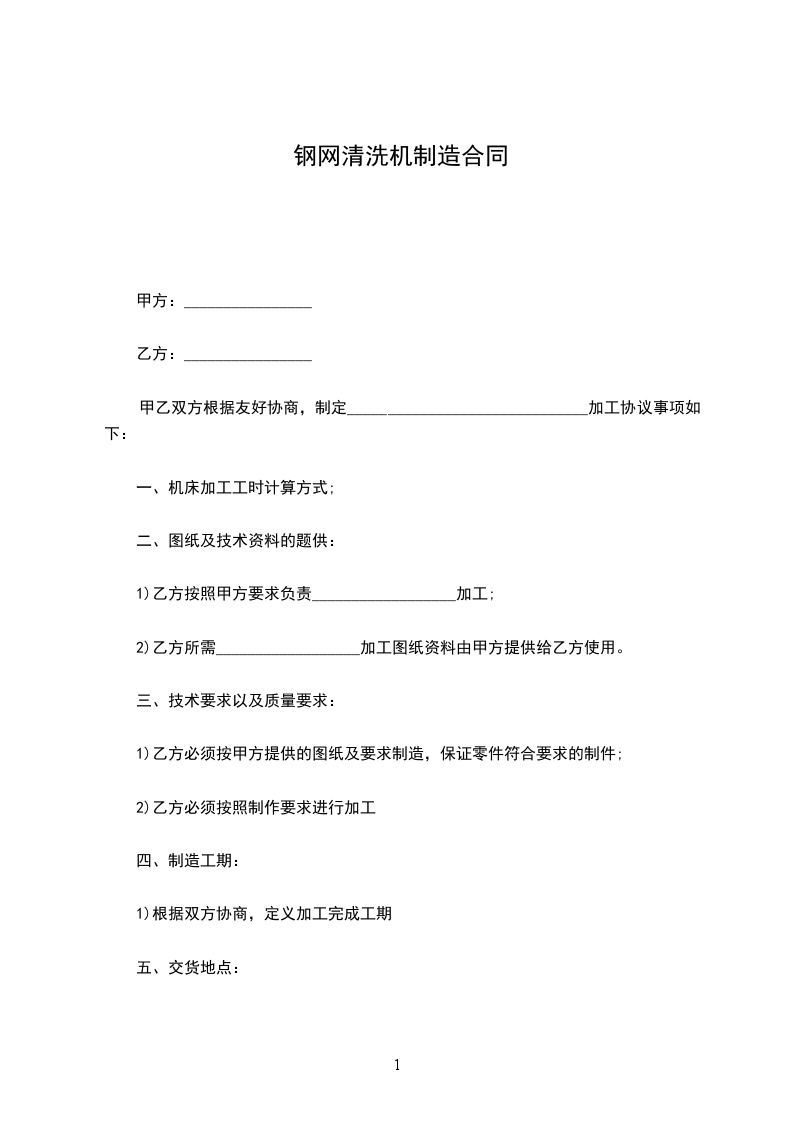 2)乙方所需__________________加工图纸资料由甲方提供给乙方使用。