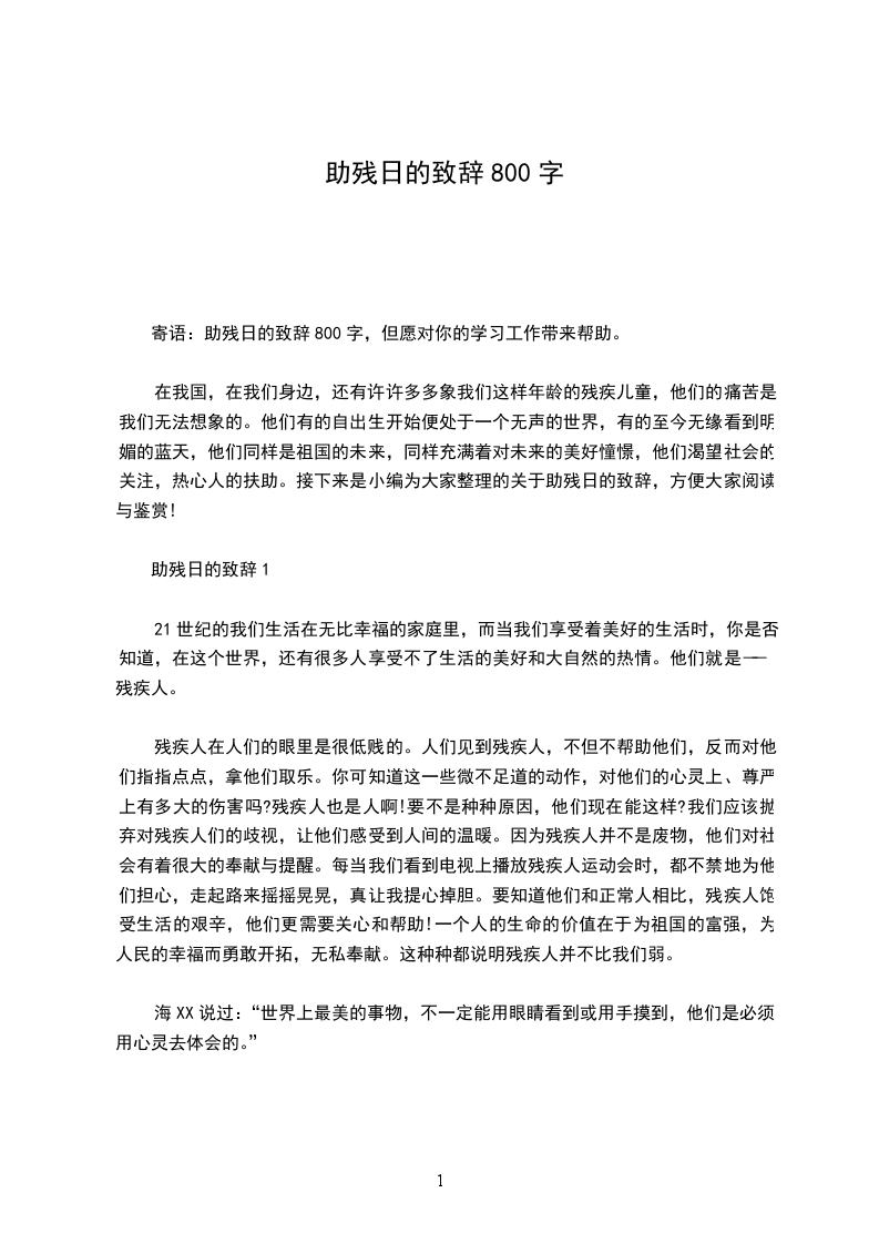 寄语:助残日的致辞800字,但愿对你的学习工作带来帮助。