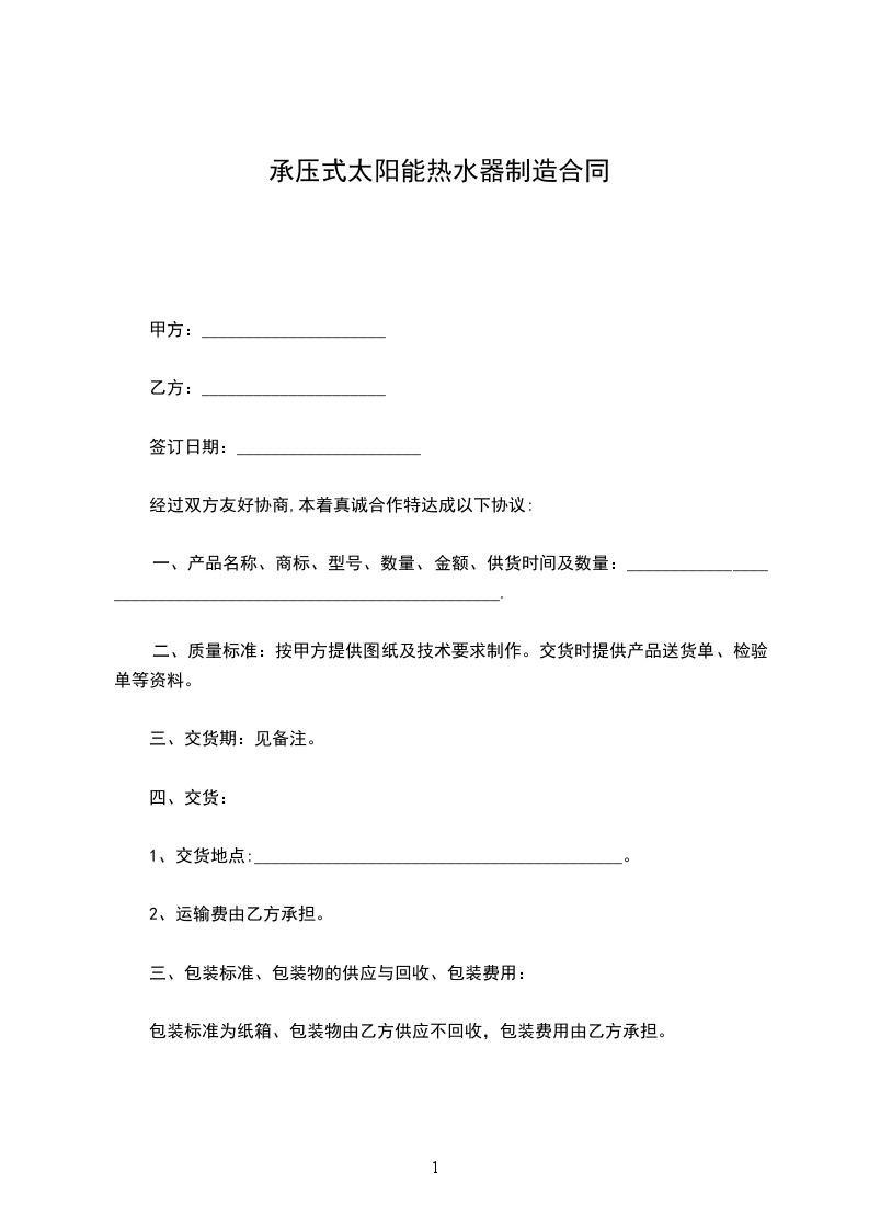 九、生效:本合同一式_______份,共两页,双方各执壹份,经双方签字盖章后立即生效。传真件具同等法律效力。