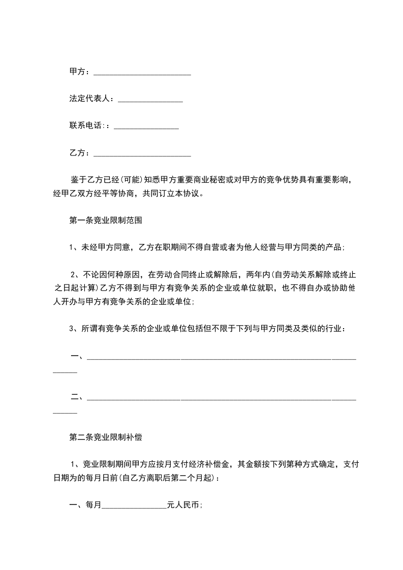 第一条竞业限制范围