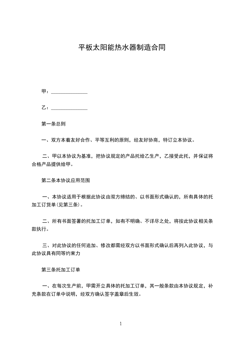 一、在每次生产前,甲需开立具体的托加工订单,其一般条款由本协议规定,补充条款在订单中说明,经双方确认签字盖章后生效。