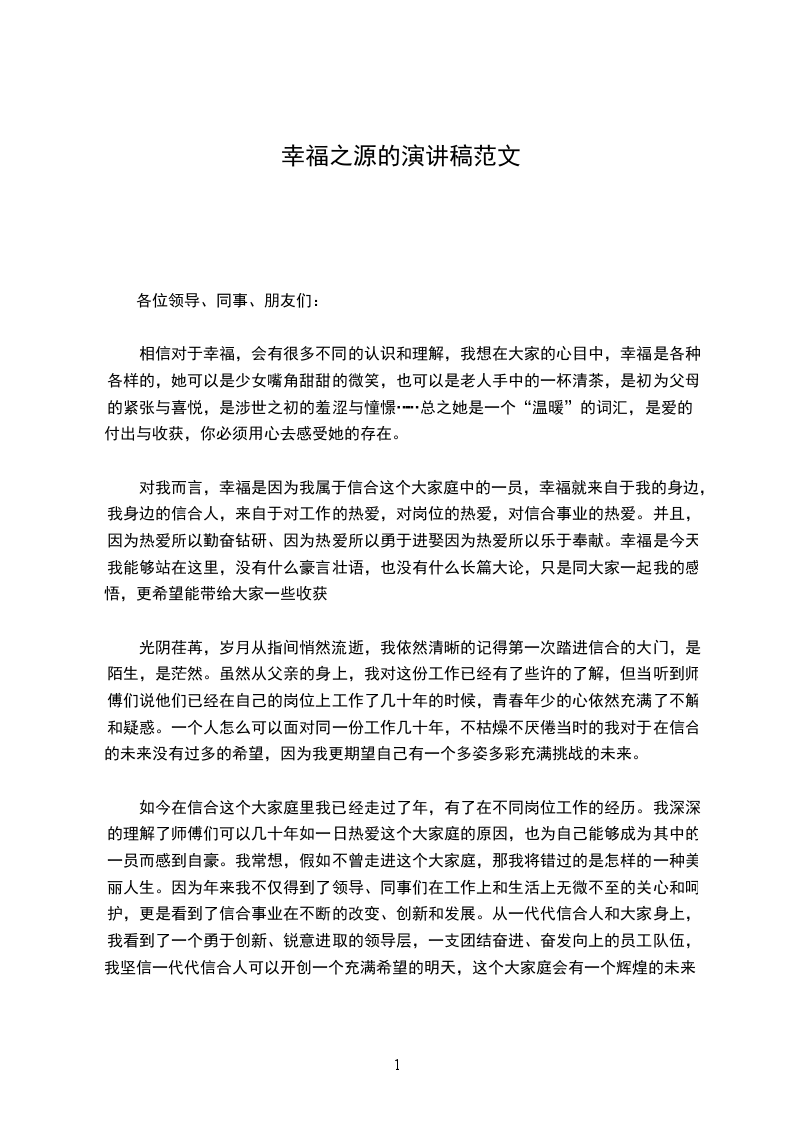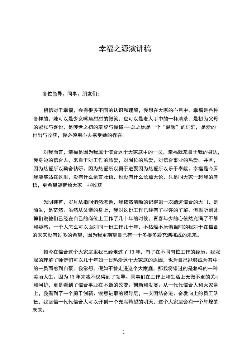 对我而言,幸福是因为我属于信合这个大家庭中的一员,幸福就来自于我的身边,我身边的信合人,来自于对工作的热爱,对岗位的热爱,对信合事业的热爱。并且,因为热爱所以勤奋钻研、因为热爱所以勇于进娶因为热爱所以乐于奉献。幸福是今天我能够站在这里,没有什么豪言壮语,也没有什么长篇大论,只是同大家一起我的感悟,更希望能带给大家一些收获