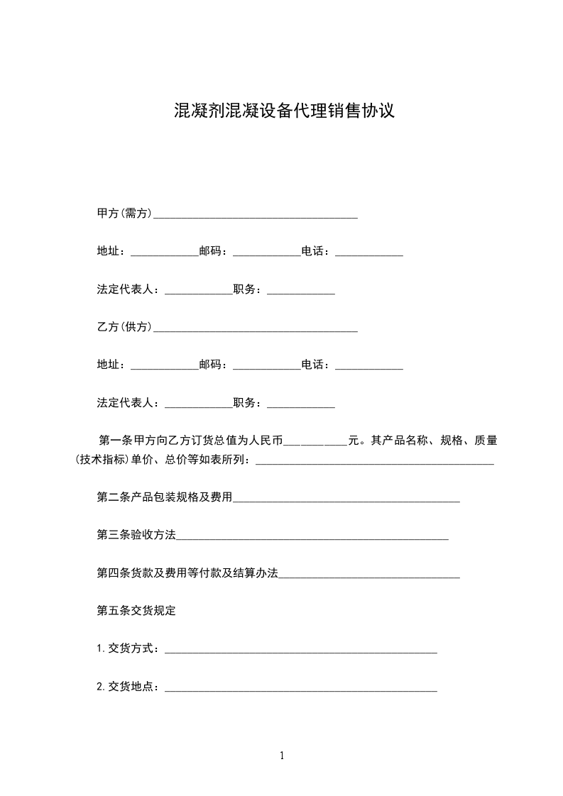 混凝剂混凝设备制造合同