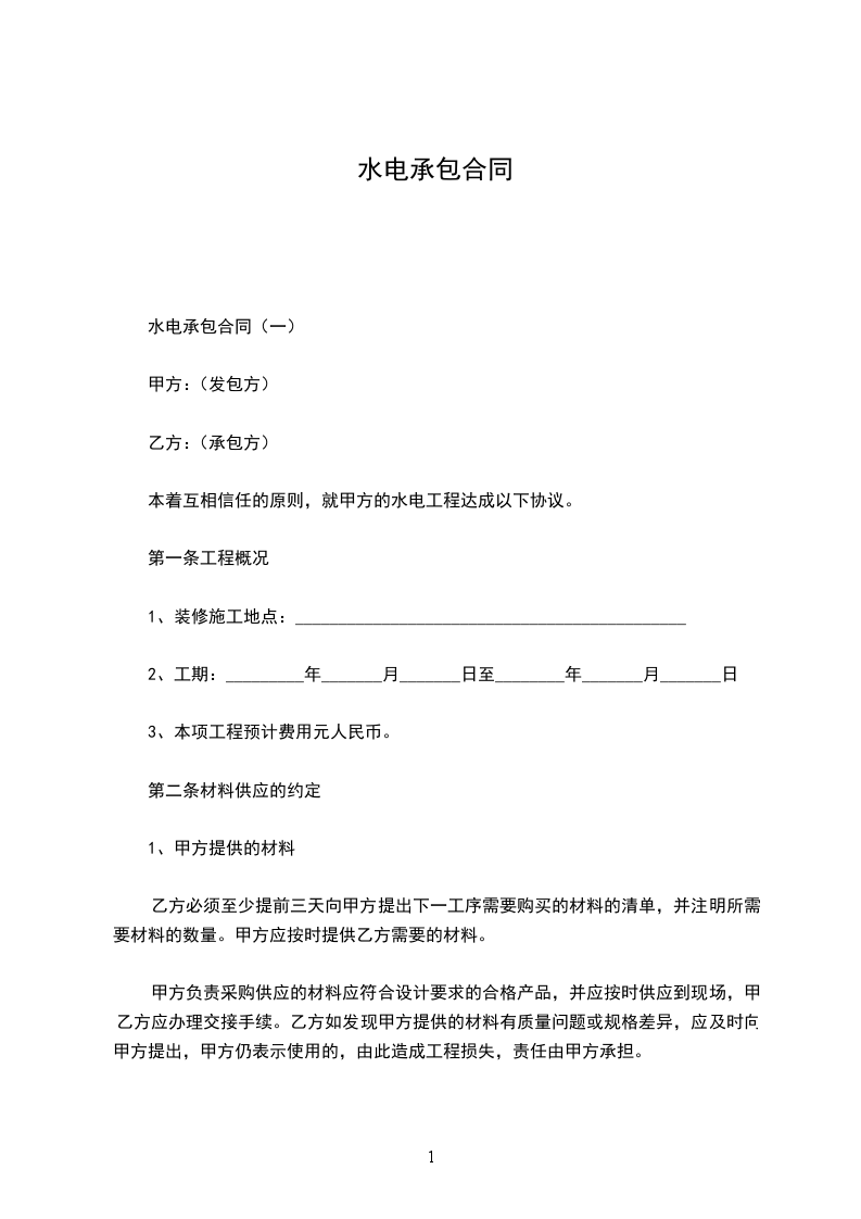 水电承包合同(一)