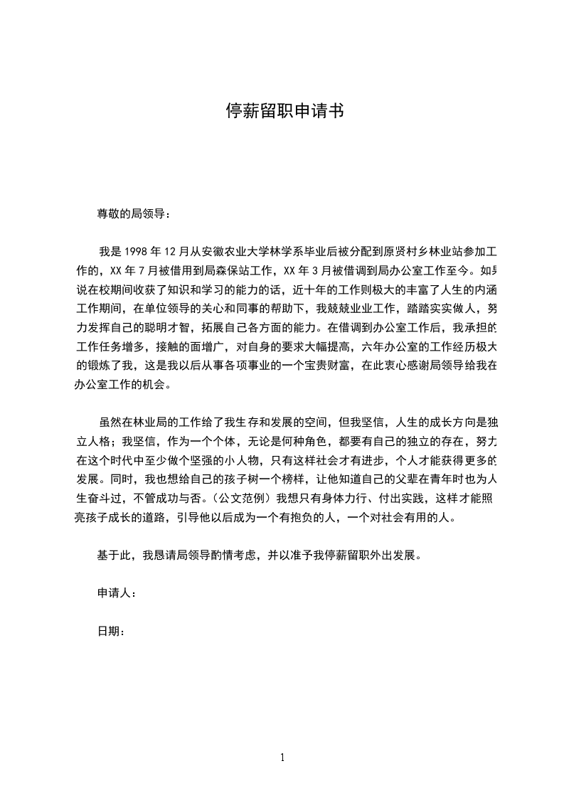 基于此,我恳请局领导酌情考虑,并以准予我停薪留职外出发展。