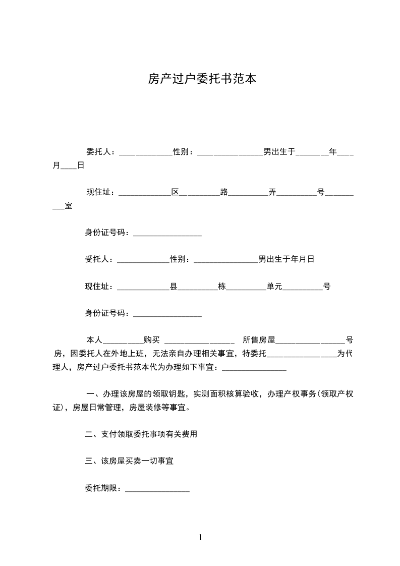 本人__________购买 _________________ 所售房屋_________________号房,因委托人在外地上班,无法亲自办理相关事宜,特委托_________________为代理人,房产过户委托书范本代为办理如下事宜:________________
