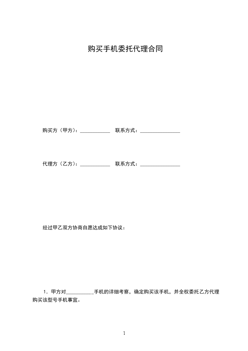 1.甲方对___________手机的详细考察,确定购买该手机,并全权委托乙方代理购买该型号手机事宜。