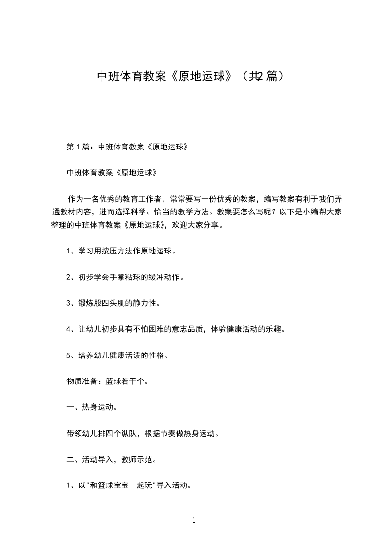 作为一名优秀的教育工作者,常常要写一份优秀的教案,编写教案有利于我们弄通教材内容,进而选择科学、恰当的教学方法。教案要怎么写呢?以下是小编帮大家整理的中班体育教案《原地运球》,欢迎大家分享。