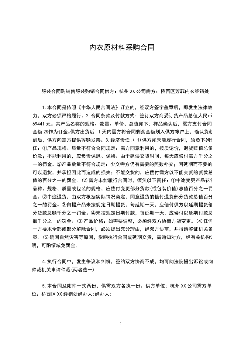 服装合同购销售服装购销合同供方:杭州XX公司需方:桥西区芳菲内衣经销处
