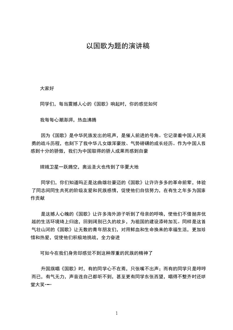 我们常说:“一滴水都可以折射太阳的七彩光芒”,同样,在我们唱《国歌》的同时,就可以看出爱国主义在哪里爱国不是一句空话,这从我们唱《国歌》时的神清和态度中就可以得到答案。试想作为一名中国人,在唱《国歌》时都三心二意、心不在焉的话,那么,我们能相信他是一个热爱自己祖国的人吗