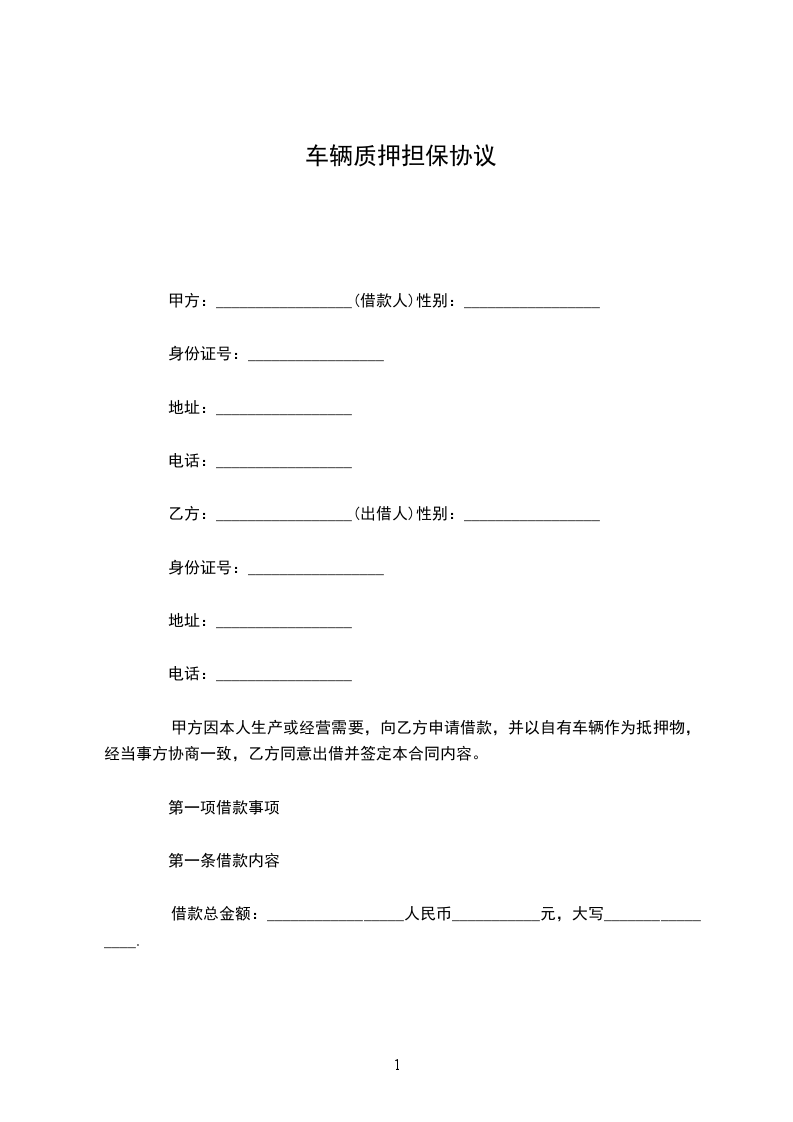 甲方因本人生产或经营需要,向乙方申请借款,并以自有车辆作为抵押物,经当事方协商一致,乙方同意出借并签定本合同内容。