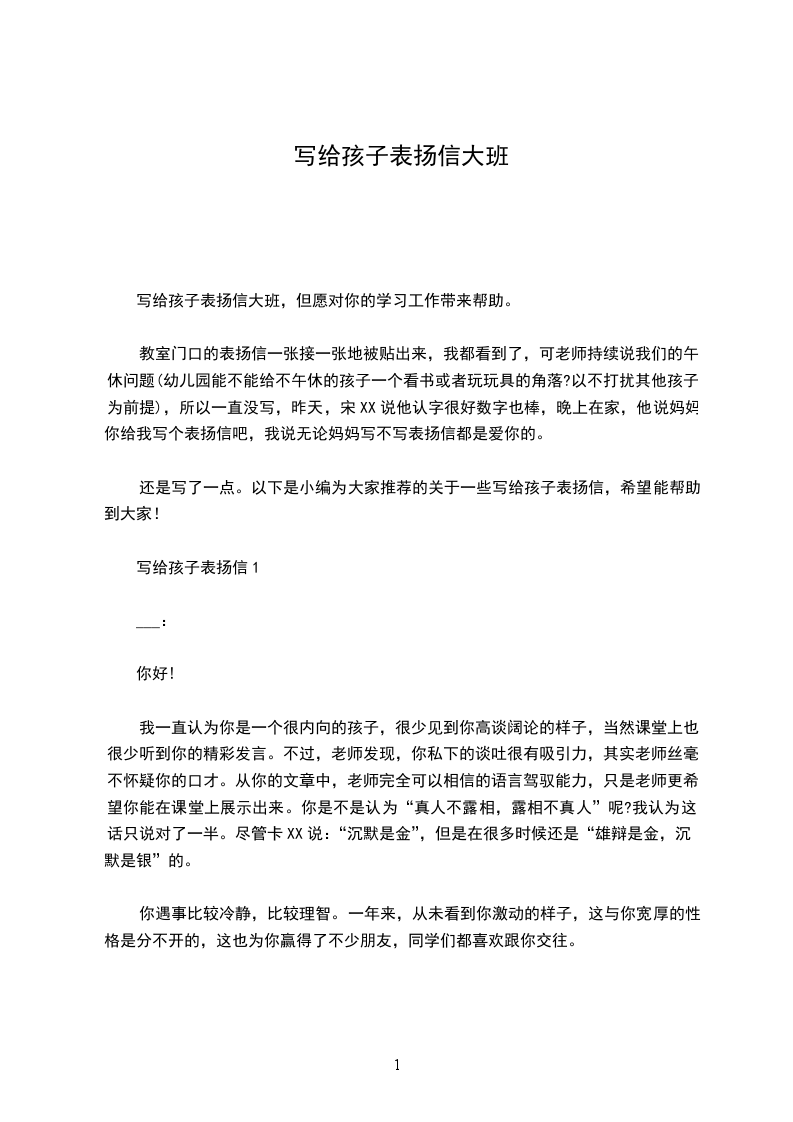 写给孩子表扬信大班,但愿对你的学习工作带来帮助。