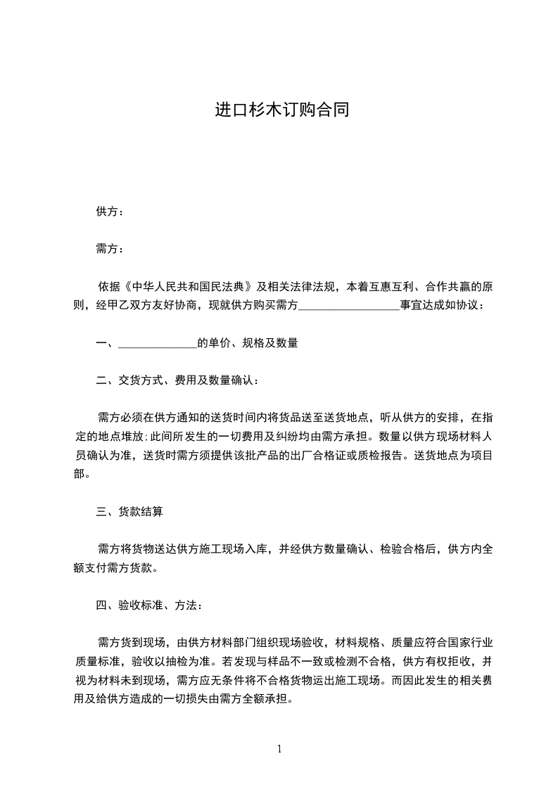 1、供方向需方供应商品的品种、数量以甲、乙双方签字确认并盖章的订单为准。