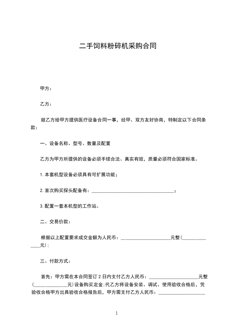 出卖方愿意出售,买受方愿意购买下列设备:
