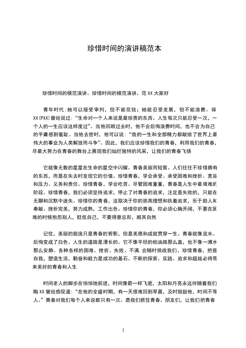 珍惜时间的模范演讲。珍惜时间的模范演讲。范XX大家好