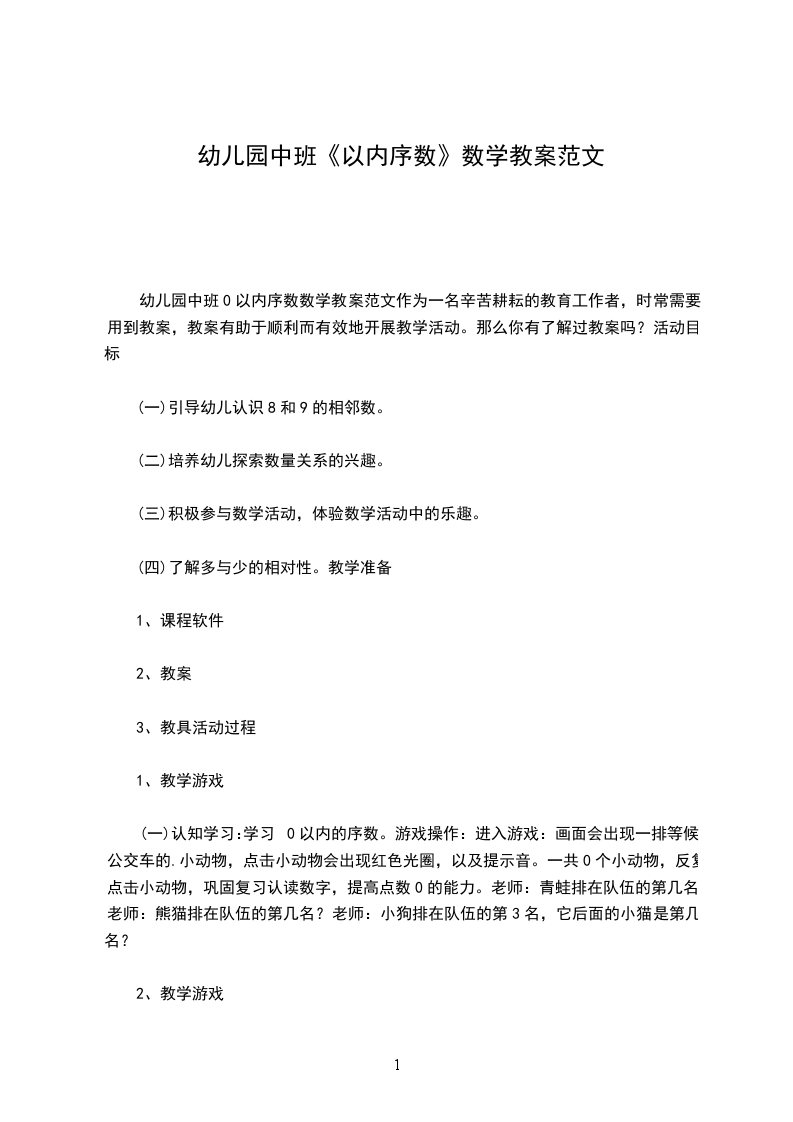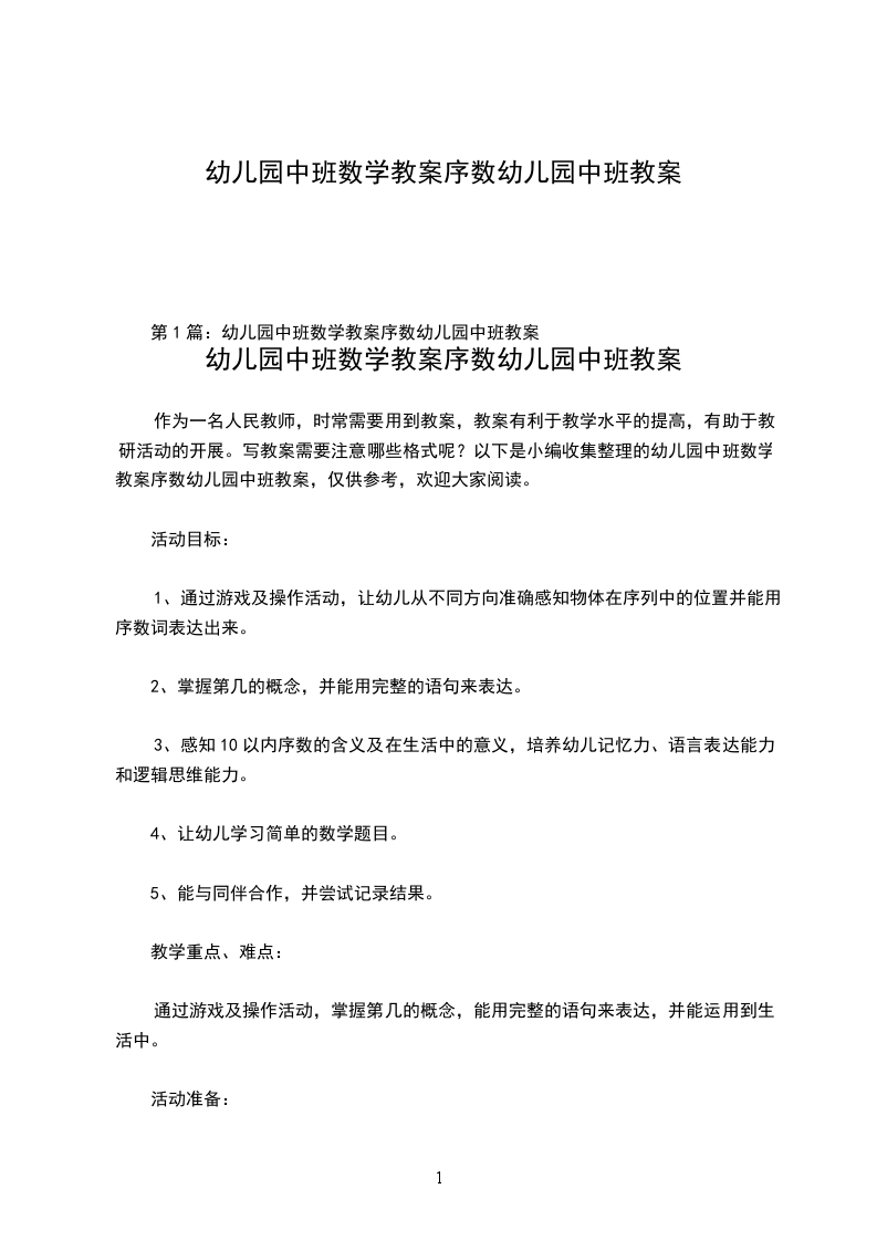 第1篇:幼儿园中班数学教案序数幼儿园中班教案