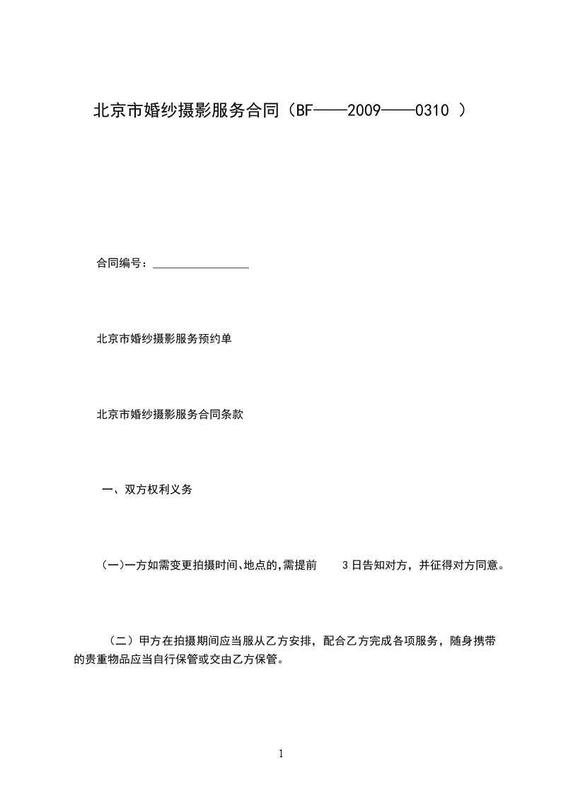 北京市婚纱摄影服务合同条款