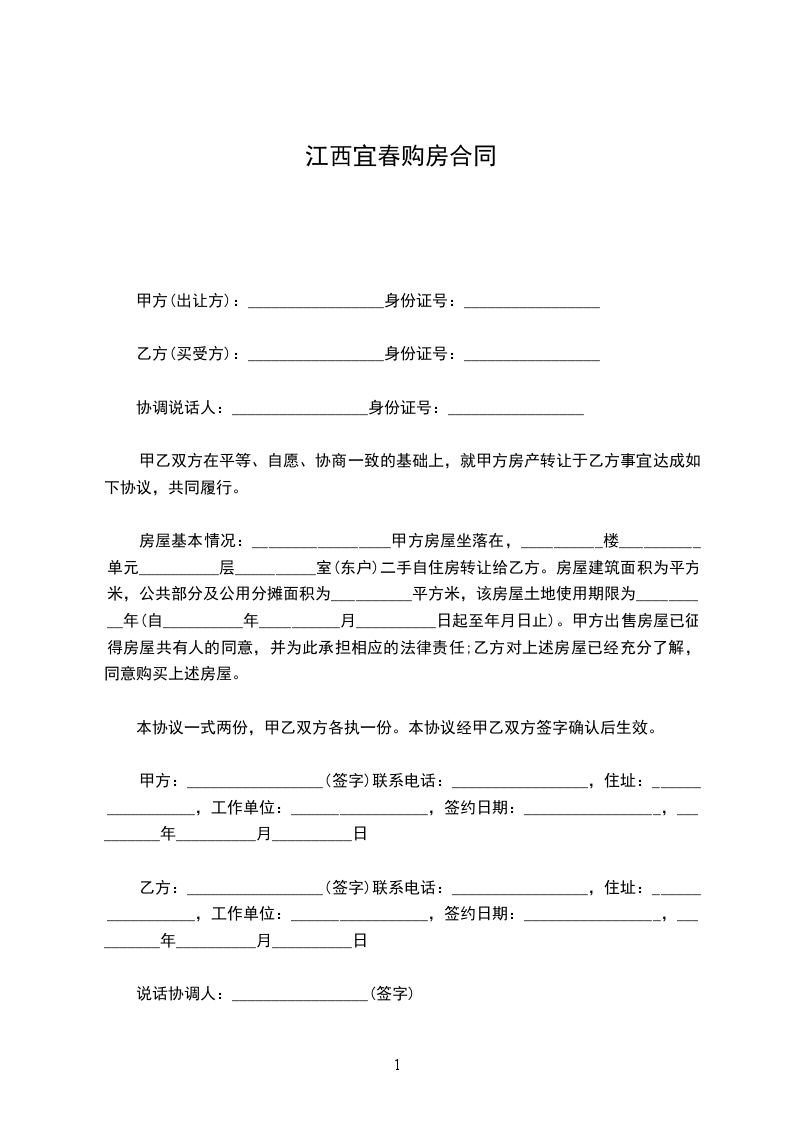 甲方:_________________(签字)联系电话:_________________,住址:_________________,工作单位:_________________,签约日期:_________________,__________年__________月__________日