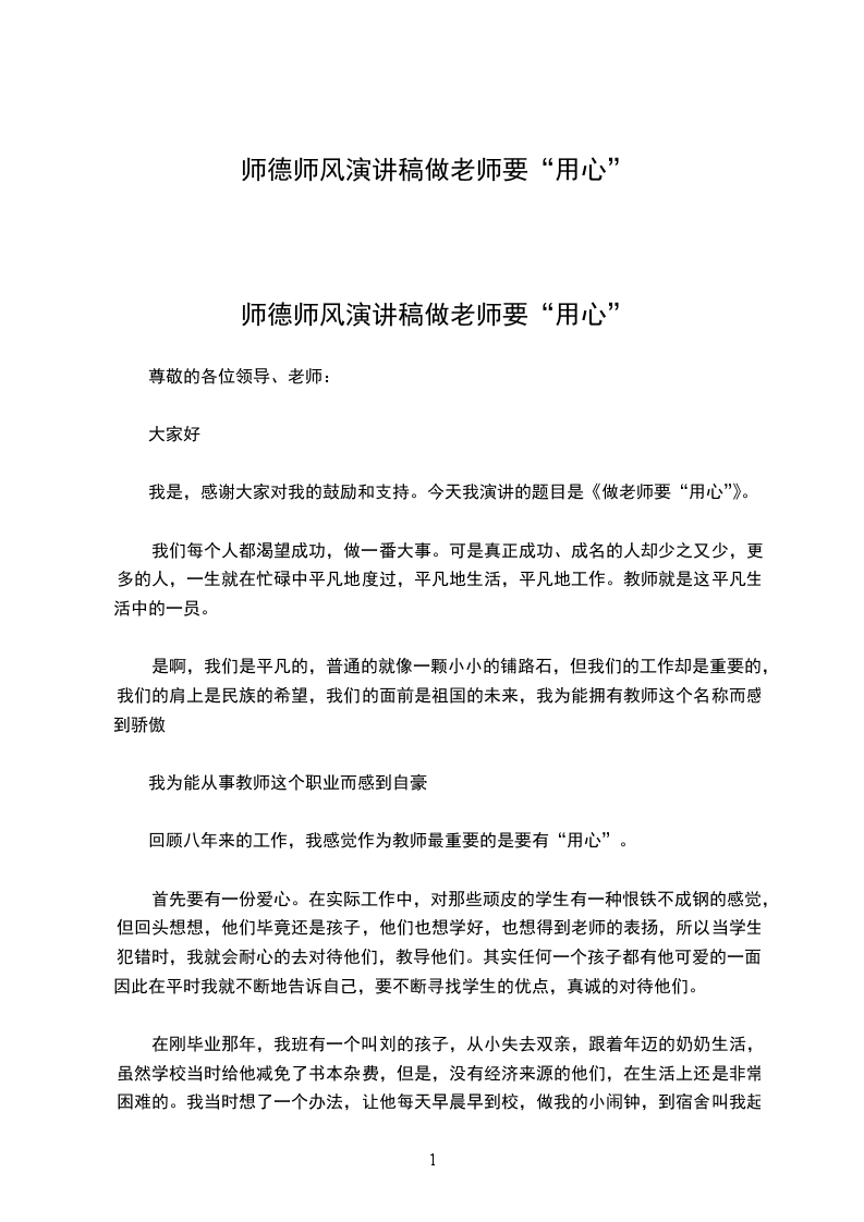 师德师风演讲稿做老师要“用心”