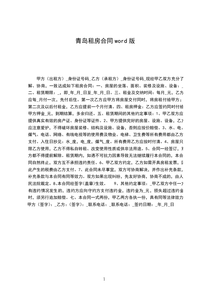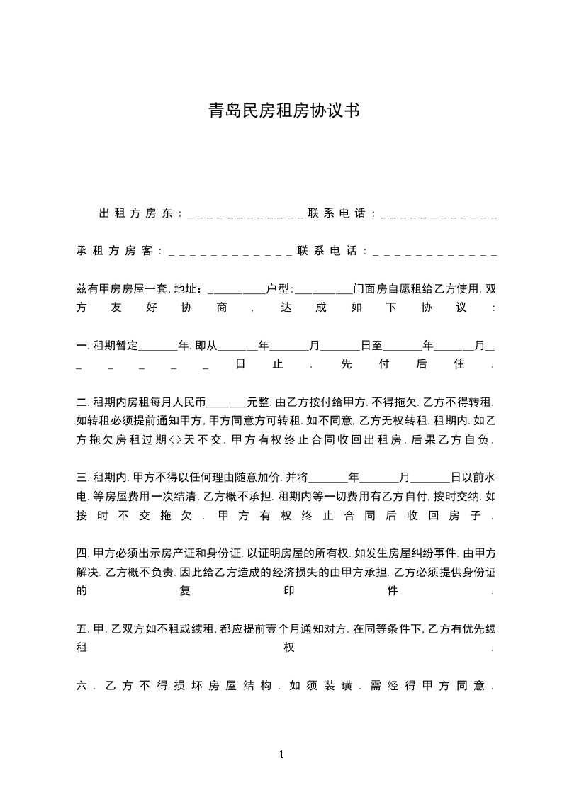 甲方(出租方)身份证号码乙方(承租方)身份证号码现经甲乙双方充分了解、协商,一致达成如下租房