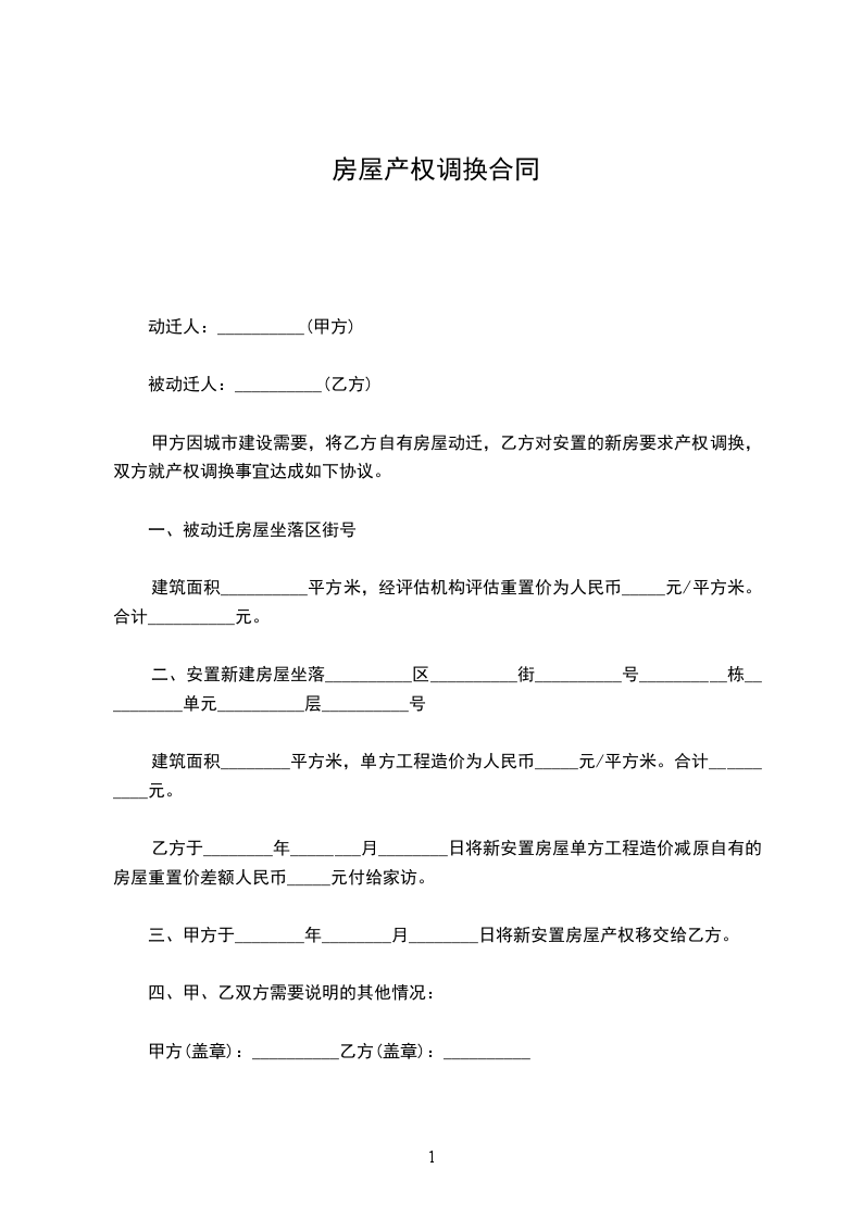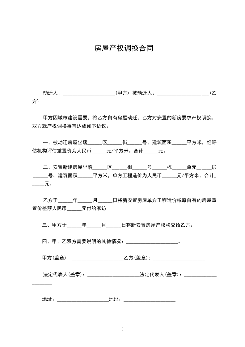 甲方因城市建设需要,将乙方自有房屋动迁,乙方对安置的新房要求产权调换,双方就产权调换事宜达成如下协议。