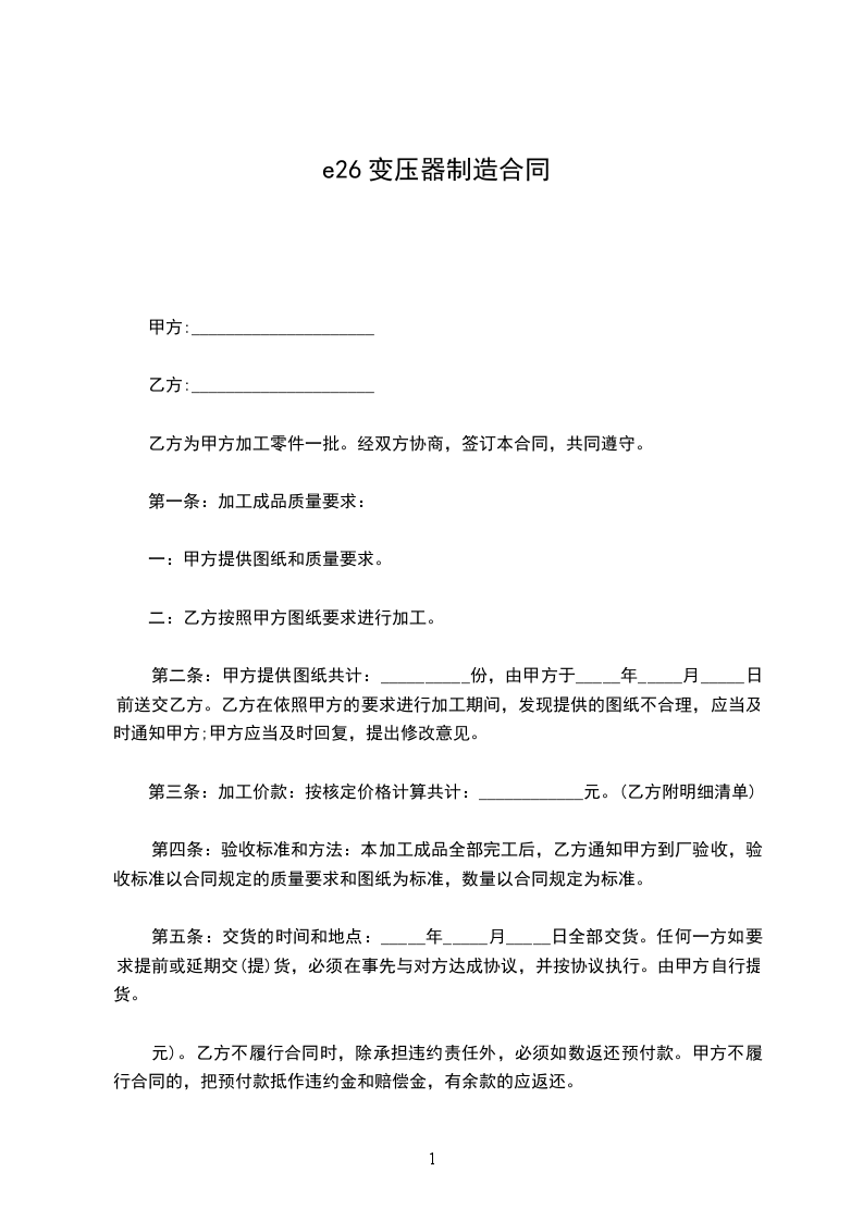 乙方为甲方加工零件一批。经双方协商,签订本合同,共同遵守。