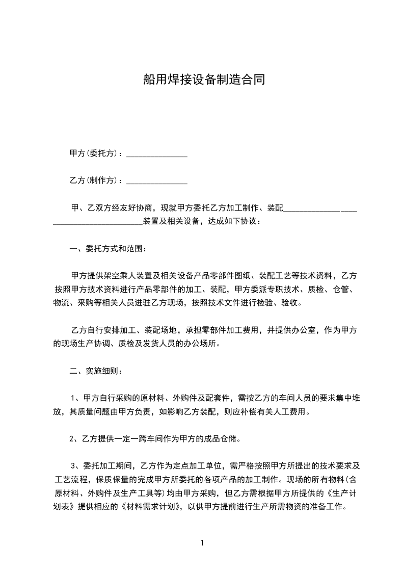 船用焊接设备制造合同